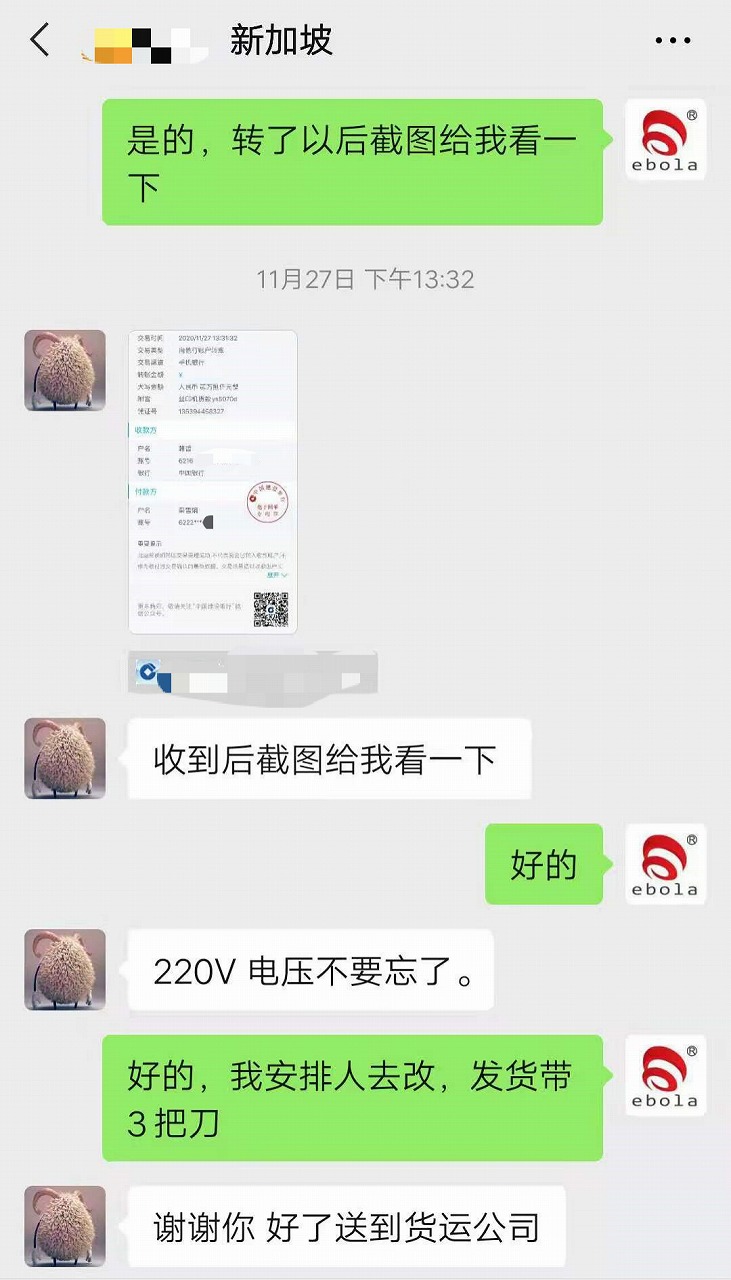 本次出口的絲印機于12月1號在深圳入倉后,于4號出船,到12月8號已到新加坡港口,貨運公司已通知盡快提貨,從付款到客戶收貨只用了不到10天時間。